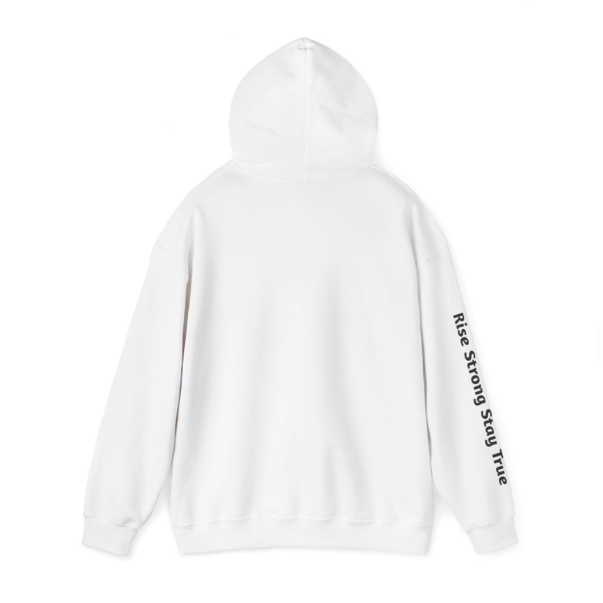 A cozy and stylish hoodie featuring the tagline 'Rise Strong Stay True' down the right sleeve and the brand name 'Ascendrix' on the chest. Perfect for those seeking comfort and motivation in their everyday wear. Ideal for adults and relevant for casual wear, outdoor activities.